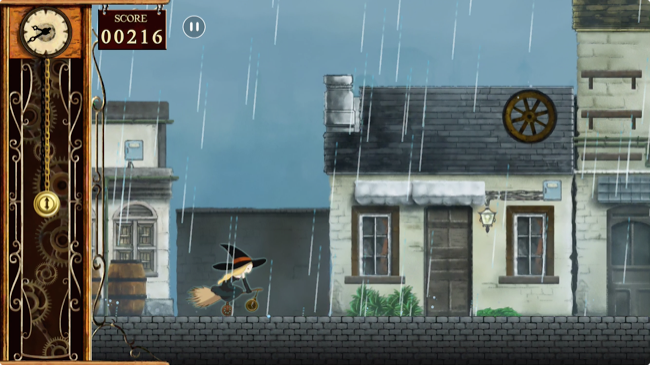 自キャラである魔女はひたすら画面左から右へ向けて走り続けます。
