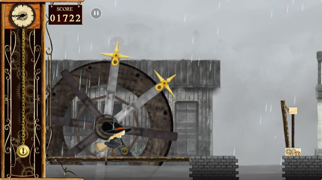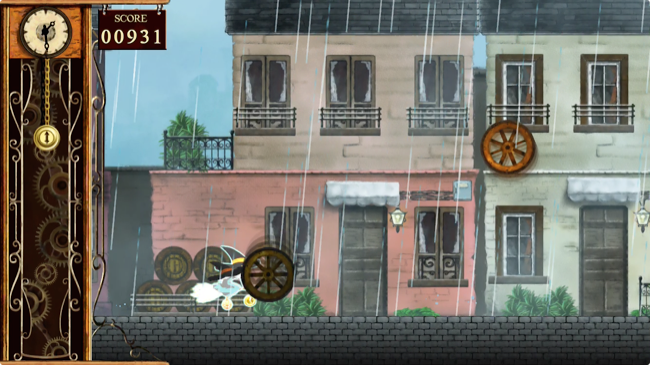 そこでプレイヤーは時を操ります!画面左端にある時計の振り子を引っ張って下げると時の流れが緩やかに!!