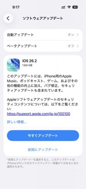2025年12月13日(土)本日AppleがiOS 26.2を正式にリリースしました。